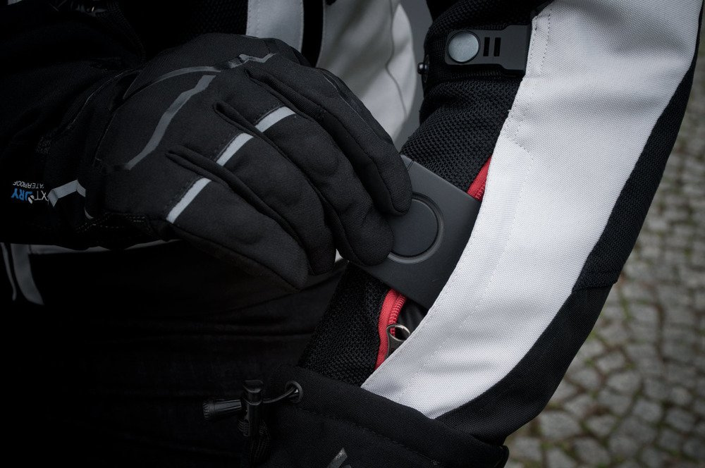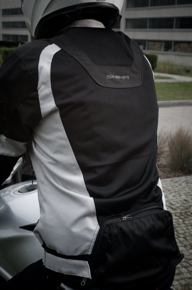 Z Shima X-Mesh pogoda jest zawsze idealna. Kiedy pada wystarczy sięgnąć do tylnej kieszeni kurtki i wyjąć wodoodporną membranę, która w odzieży motocyklowej pełni kluczową rolę. Dzięki jej lekkiej, cienkiej konstrukcji membranę w każdej chwili membranę można bezpiecznie złożyć i schować. Kieszeń z tyłu kurtki wyposażona jest w 2 zamki, co zapewnia wentylację, gdy chowamy mokrą membranę. To bardzo wygodne i praktyczne rozwiązanie, które szybko docenicie.