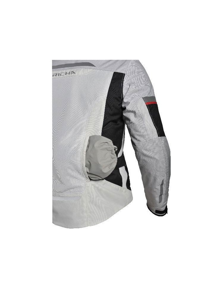 Kurtka Richa Chinook , bardzo ciekawe rozwiązanie dla jazdy praktycznie w całym sezonie. Kurtka wykonana z 500D & 720D nylon poliamid + panele Mesh , jak zawsze u Richy pełen zestaw ochraniaczy D3O, łącznie z ochraniaczem pleców. Duża ilość odblasków Retro Reflex pozwala nam być widocznymi w czasie szarówki. Chinook jest trochę inaczej zbudowany niż większość kurtek. Kurtka główna w dużą ilością wstawek Mesh doskonale będzie się sprawować w ciepłe -upalne dni, do tego wpinana podpinka ocieplająca. Natomiast membrana w formie kurtki zakładanej na wierz ukryta jest w tylnej kieszeni kurtki podstawowej w małej torebeczce. Zaczyna padać wyciągamy membranę z kieszeni tylnej zakładamy na kurtkę . Przestało padać zdejmujemy membranę a pod spodem mamy suchą kurtkę . Nam się to podoba