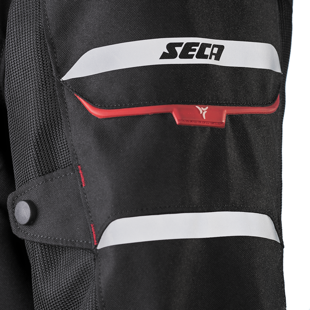 Kurtka motocyklowa Seca Airflow została wykonana w całości odpornego na ścieranie materiału DuraTec. Wyposażona w certyfikowane protektory łokci i barków oraz możliwość zastosowania dedykowanego protektora pleców. Dodatkowo, o nasze bezpieczeństwo dbają odblaskowe wstawki z materiału ReflexLite®.