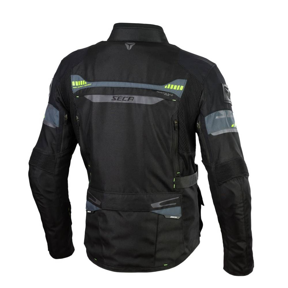 Seca Arrakis II to trójwarstwowa tekstylna kurtka turystyczna. Wykonana z odpornego na przebicia i przetarcia materiału DuraTec®. Wyposażona w kilku warstwową oddychającą membranę Reissa która zapewnia wodoodporność oraz wiatroszczelność. Dodatkowo komfort termiczny zapewnia wypinane ocieplenie. Za bezpieczeństwo odpowiadają komfortowe w użytku protektory łokci i ramion CE SW poziomu 2 oraz dodatkowa kieszeń na protektor pleców (sprzedawany oddzielnie). Strategicznie rozmieszczone odblaski ReflexLite gwarantują widoczność podczas kiepskich warunków atmosferycznych i w nocy. Na zamku głównym znajdują się panele wentylacyjne wykonane w systemie RespirAir, odpowiedzialne za wymianę powietrza wewnątrz kurtki. Komfort zapewniają elastyczne panele przystosowane do pozycji motocyklisty. System regulacji w pasie, na rękawach i mankietach daje możliwość lepszego dopasowania. Dodatkowy zamek 360° pozwala na spięcie kurtki ze spodniami.