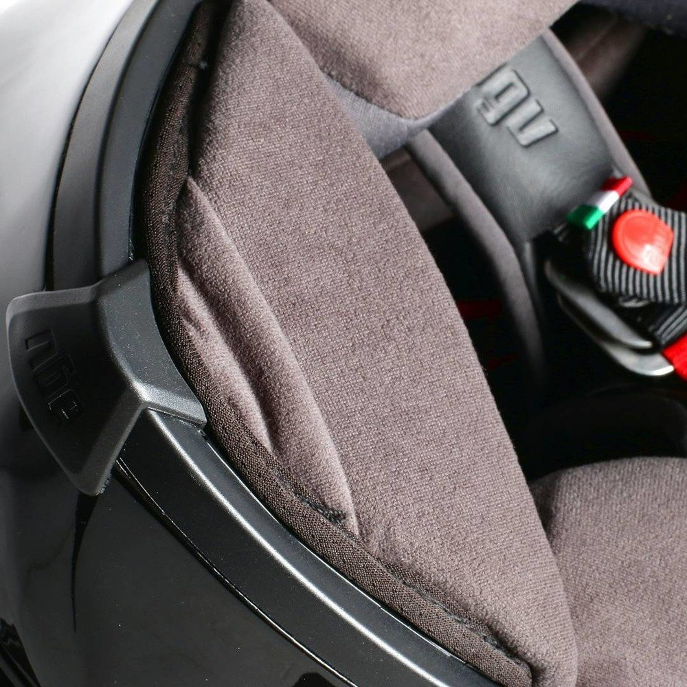 W celu poprawy i tak świetnej już ergonomii przebudowano całkowicie wnętrze kasku. Dwa nowe rodzaje wysokiej jakości materiałów wyściółki - Ritmo i Shalimar zostały połączone tak, żeby szwy omijały wrażliwe miejsca na głowie. Cała wyściółka jest teraz pokryta warstwą antybakteryjną a kołnierz dodatkowo zabezpieczono higrofobowo w technologii 2Dry. Dzięki temu woda podczas ulewy nie dostanie się do wnętrza kasku.
